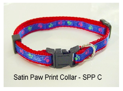 Varco Satin Paw Print Collar 16mm x 30-45cm (Sky on blue)